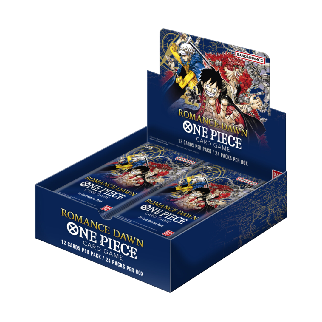 Each Romance Dawn booster box contains 24 booster packs. Each booster pack contains 12 randonly inserted game cards.